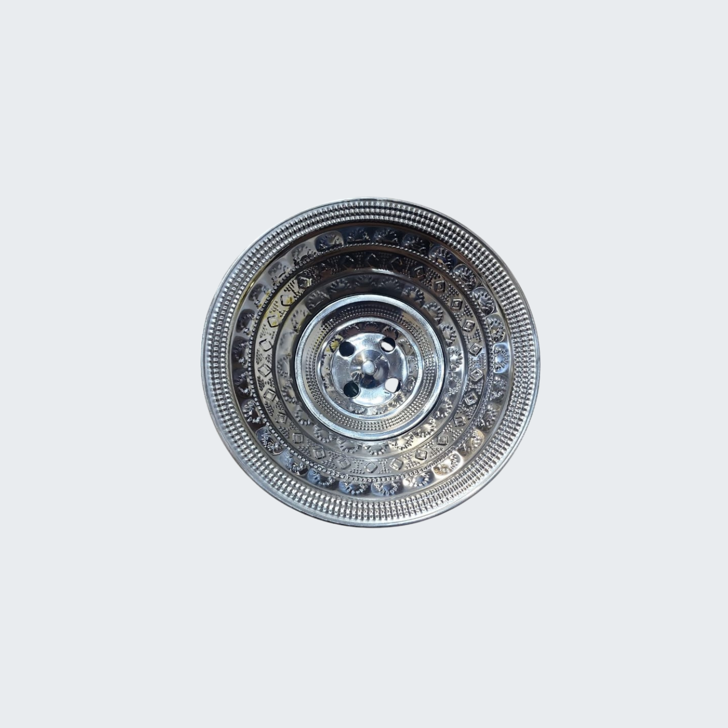 The Chimchi is an intricately crafted stainless steel serving platter that combines functionality with artistic beauty. Designed with detailed engravings, it adds a traditional yet modern charm to any dining setting. The smooth, polished surface enhances food presentation, making it ideal for serving snacks, appetizers, or full meals with style. Made from high-quality stainless steel, it resists rust and stains, ensuring lasting shine and durability. The slightly raised edges prevent spills, making it practical for everyday use as well as special occasions. Whether used in homes, restaurants, or festive gatherings, the Chimchi provides an elegant way to serve food while reflecting a timeless sense of tradition. Its sturdy build ensures it remains a reliable serving accessory, blending aesthetic appeal with practicality.